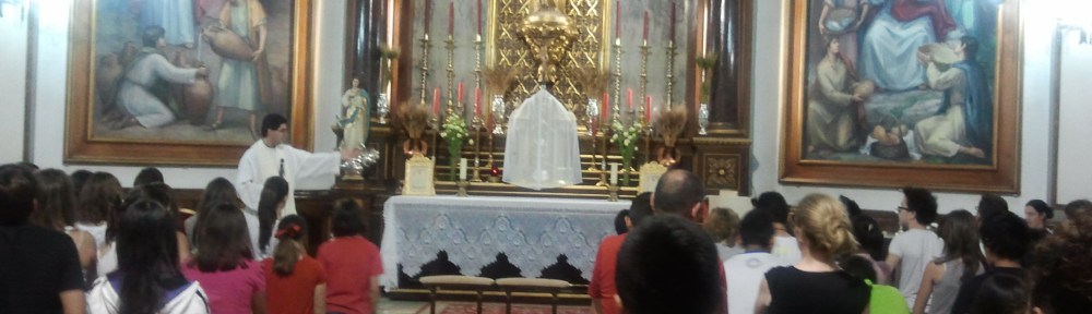 Los 13 grupos de jóvenes se reunieron con sus catequistas y el coadjutor D. Asensio para tener una celebración en la capilla de la comunión de la Basílica. Con ella se concluía el último tema que los jóvenes han tratado, el 8º mandamiento. Al final de la celebración todos compartieron un ágape fraterno, con ambiente festivo, en el Atrio de la Purísima.