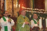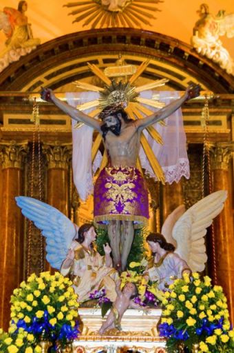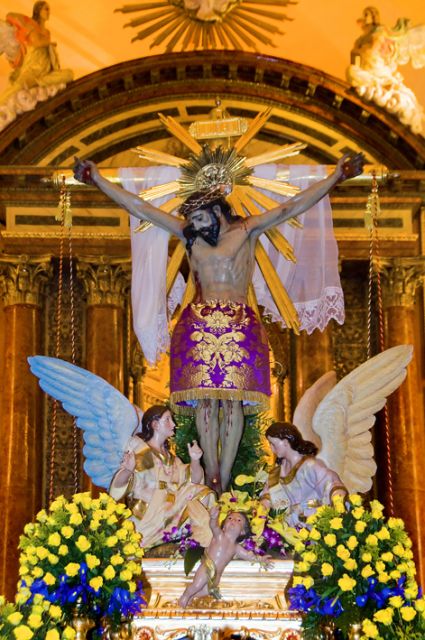 Aunque estaba previsto que la Misa presidida por el Obispo se celebrase en la explanada de la Ermita del Stmo. Cristo del Consuelo, la lluvia que acompañaba el día hizo que la Eucaristía tuviera lugar en la Basílica de Ntra. Sra. de la Asunción.