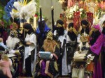 La tarde del día cinco hicieron su entrada en la Basílica acompañados por su numerosa corte de pajes cargados con cientos de regalos que repartieron entre los niños que abarrotaban las naves del templo. Y el día de 6 participaron en la misa solemne de las 12.