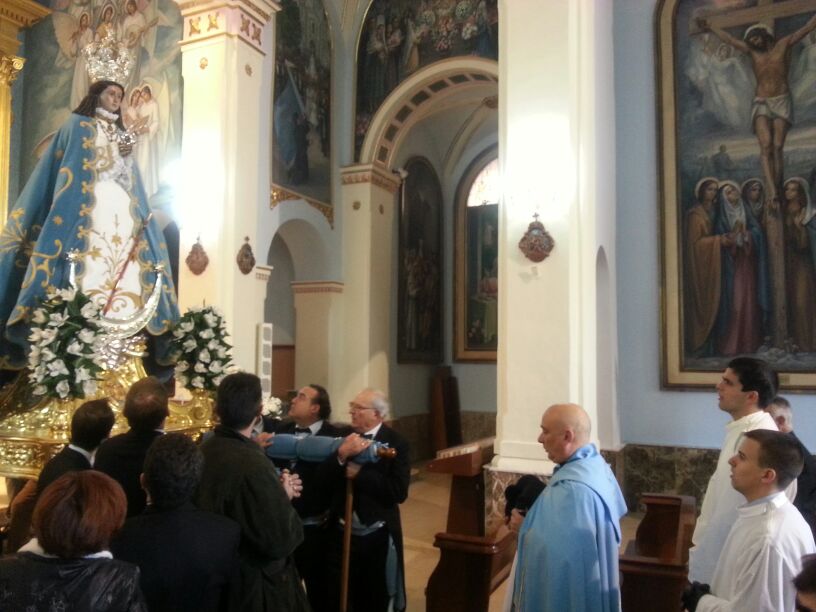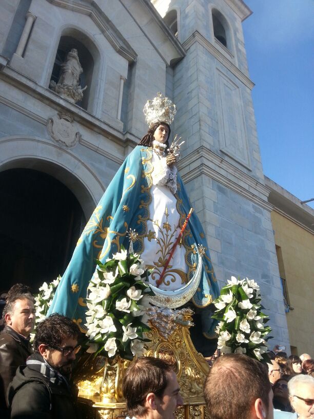 La mañana del día 7 de diciembre, como de costumbre, se abrió con la celebración de la Eucaristía en el Santuario de nuestra patrona, la Purísima Concepción, a las 9h. Al acabar la santa misa, con todo preparado, se procedió a la Bajada de la Virgen del Castillo entre numerosos fieles que quisieron acompañarla en el trayecto.