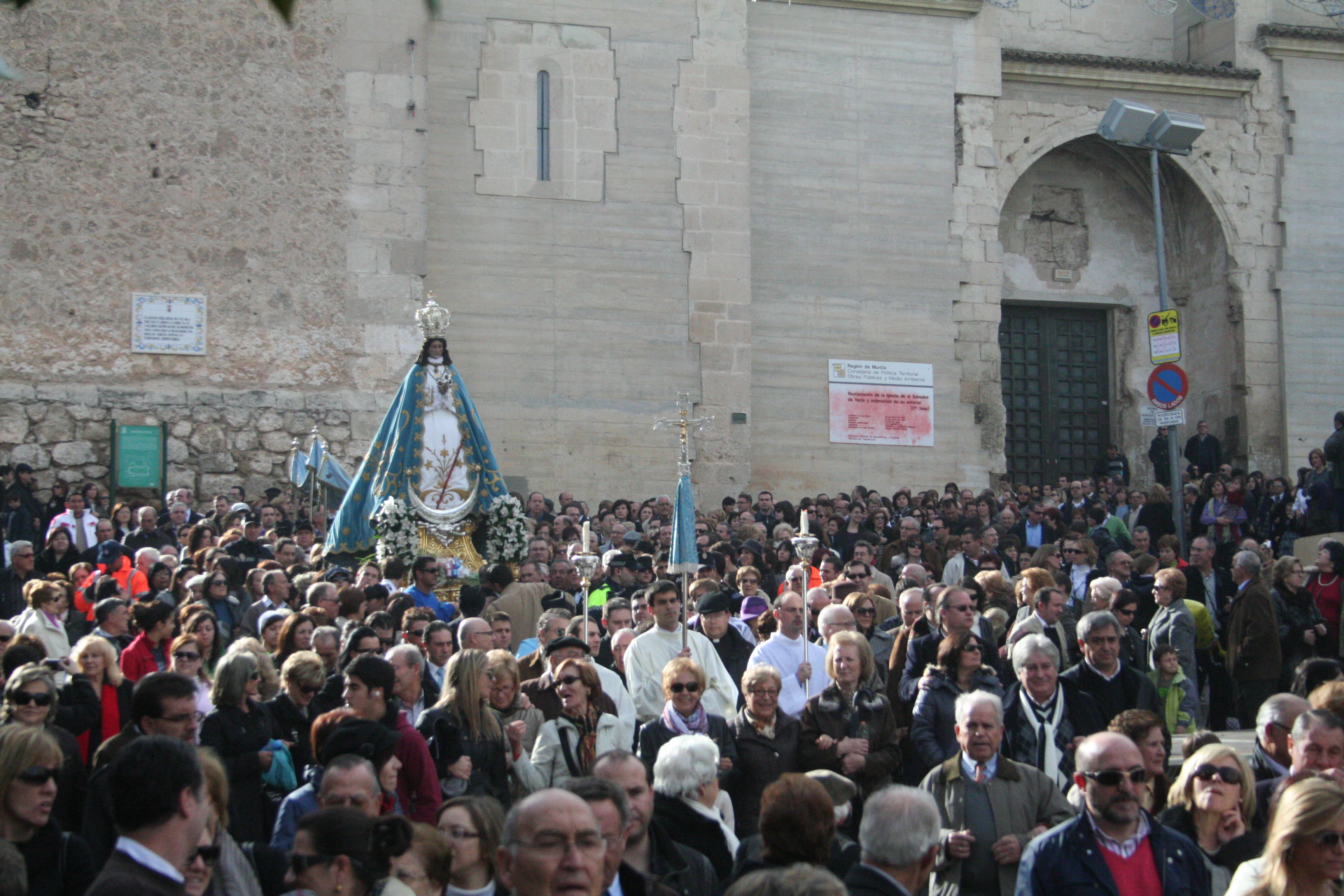 Nuestra Basílica, de la que el año 2018 celebraremos su 150º aniversario, se construyó por el empeño de un pueblo que quería una iglesia donde cupieran todos, pues la Iglesia Vieja se les había quedado pequeña. ¡Qué gran fe en Dios y qué amor más grande a la Virgen tenían aquellos antepasados nuestros que, frente a toda oposición, consiguieron levantar el mayor monumento que tiene nuestra ciudad. Sus medios económicos eran pocos, pero su amor era muy grande. Ahí tenéis la prueba de lo que os estoy hablando. Cada vez que miramos la Basílica o entramos en ella podemos ver el valor y la fuerza del amor, no sólo para realizar obras materiales, sino para alcanzar proyectos que son orgullo de todo un pueblo porque unió a todos los hijos de Yecla en un fin común. La edificación de la Basílica hizo una Yecla unida, vecina, solidaria, en convivencia, satisfecha de sí misma como ningún otro esfuerzo la haya podido parangonar en la misma medida hasta el día de hoy. Y no digamos el esfuerzo que supuso, acabada la Guerra Civil ponerla de nuevo en buen uso y tenerla preciosamente repristinada para el gran año de la Coronación Canónica de nuestra Patrona, el Año Mariano de 1954. No había mucho dinero, pero hubo mucho amor y el sueño se pudo hacer realidad.