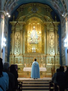 Por eso todos los días se reza el santo rosario en el Santuario a las siete de la mañana y a las siete y media se celebra la eucaristía (ocho y media los sábados y domingos) , con gran afluencia de fieles que comienzan el día honrando a nuestra Madre.
